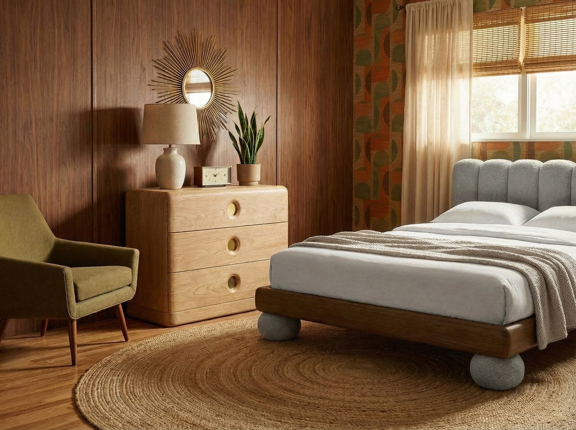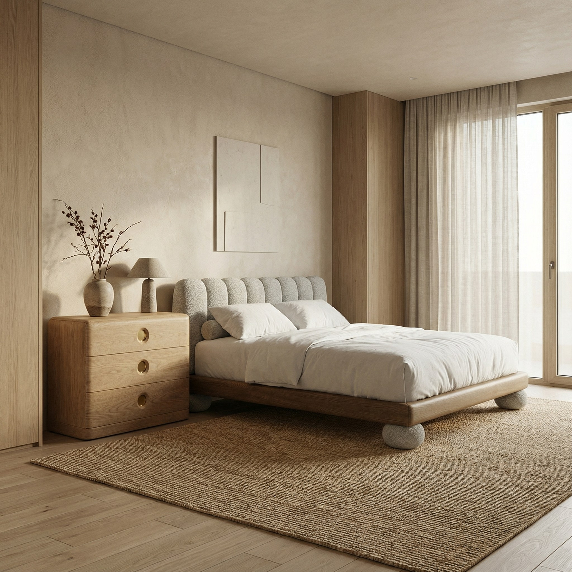 Кровать с мягким изголовьем и мягкими ножками по углам для безопасности мизинчиков.